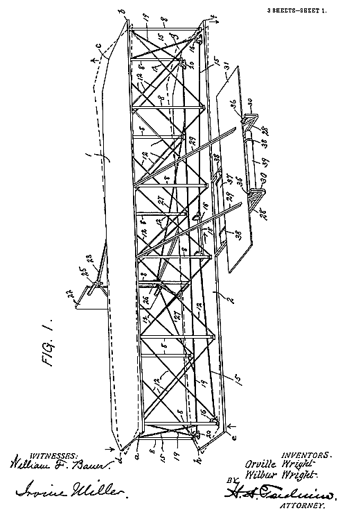 ORVILLE WRIGHT, WILBUR WRIGHT. Witnesses: CHAS. E. TAYLOR, E. EARLE FORRER.
