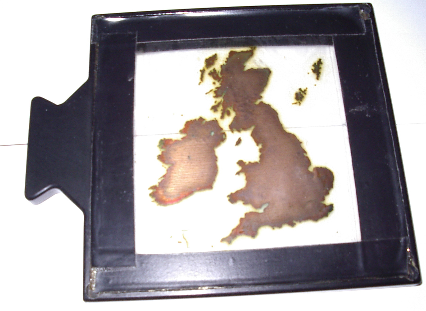The SC4020 Form Plates allowed a background image to appear on film frames. There was an engineer's form for alignment and ones to emulate graph paper. The one below is one used for adding a UK map outline to a recorded image.